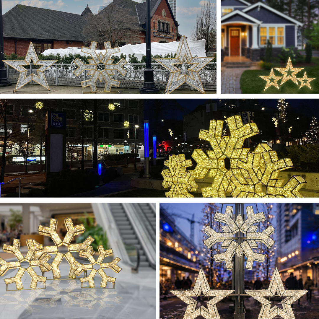 For cities and BIAs seeking to enhance their holiday lighting decor, Star Illuminations offers a diverse selection of premium aluminum “Selfie” motifs designed to elevate your seasonal displays and create an interactive experience for visitors. These eye-catching designs are easy to set up. Each piece is hand-crafted with a high-strength, gold-painted aluminum frame for durability and elegance.
